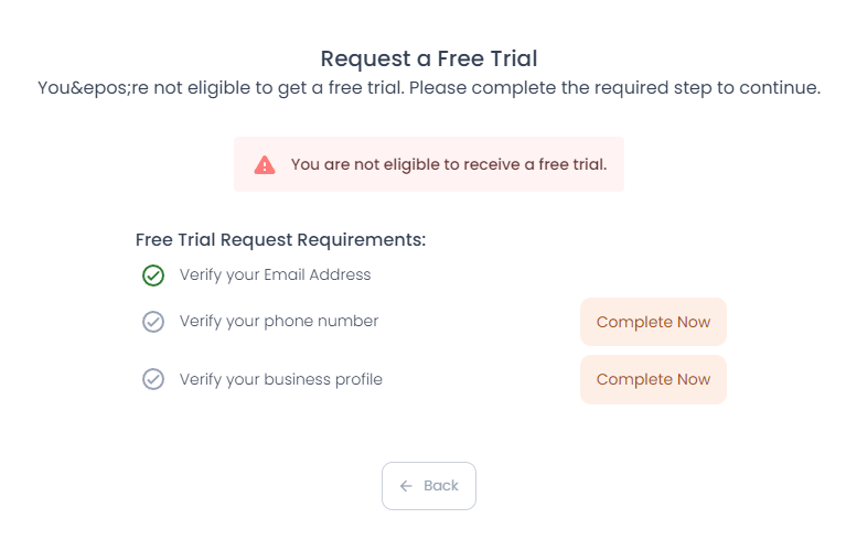Setelah klik "Request Free Trial" pada tahap sebelumnya, anda akan diminta melakukan verifikasi nomor telephone dan melengkapi profil bisnis seperti gambar dibawah.&#x20;