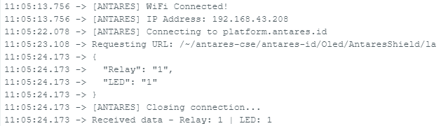 Get data dari Antares IoT Platform dan menggerakan relay dan menyalakan LED.