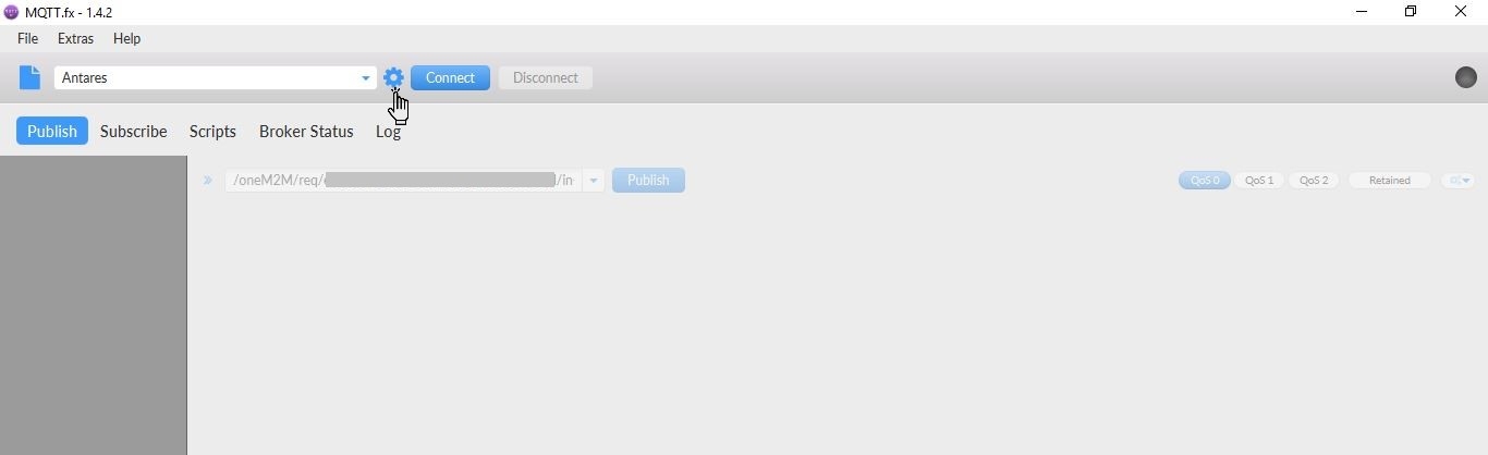 Buka software MQTT FX. Antarmuka pengguna ditunjukkan pada gambar berikut.