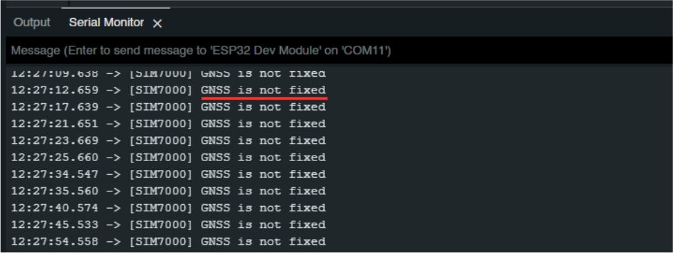 Serial.println("[SIM7000] GNSS is not fixed");