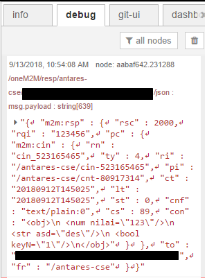 *Node* “debug” dapat digunakan untuk melihat pesan yang dikirim.