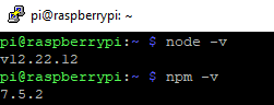 Jika Anda dapat melihat versi Node.js dan library npm setelah menginputkan syntax di atas seperti pada gambar berikut, maka proses instalasi telah berhasil.&#x20;