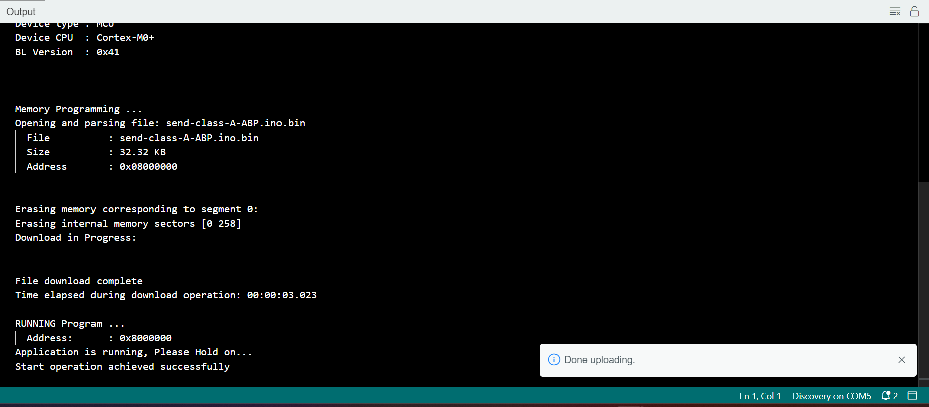 Gambar Halaman Arduino IDE Setelah Upload Berhasil.
