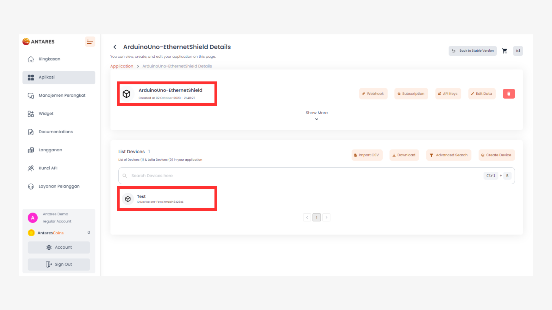 1. Log in to your Antares account console page<br>