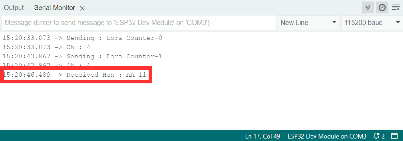 <figure><img src="https://content.gitbook.com/content/7cujmJ5QHdJaAjH815aZ/blobs/perxBNU2YCOkLKyrLnTj/Pesan%20Downlink%20Serial%20Monitor.png" alt=""><figcaption><p>Image of the downlink message received on the Serial Monitor.</p></figcaption></figure>