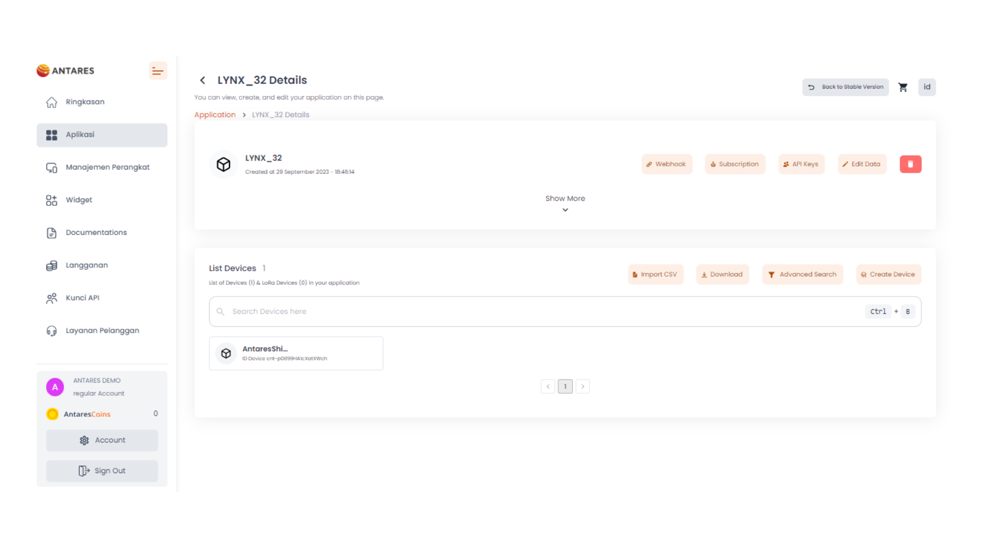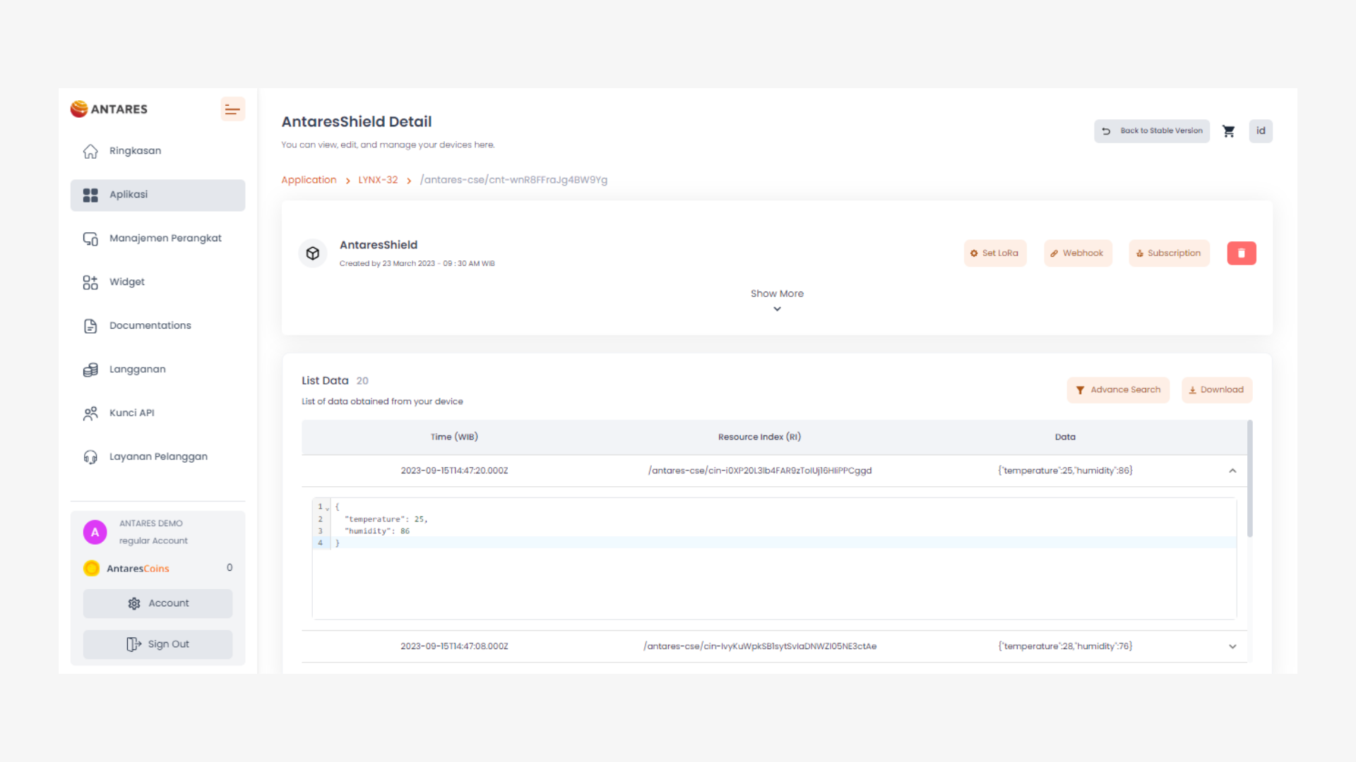 After uploading the programme successfully, then open the device antares page and see if the data has been successfully sent.