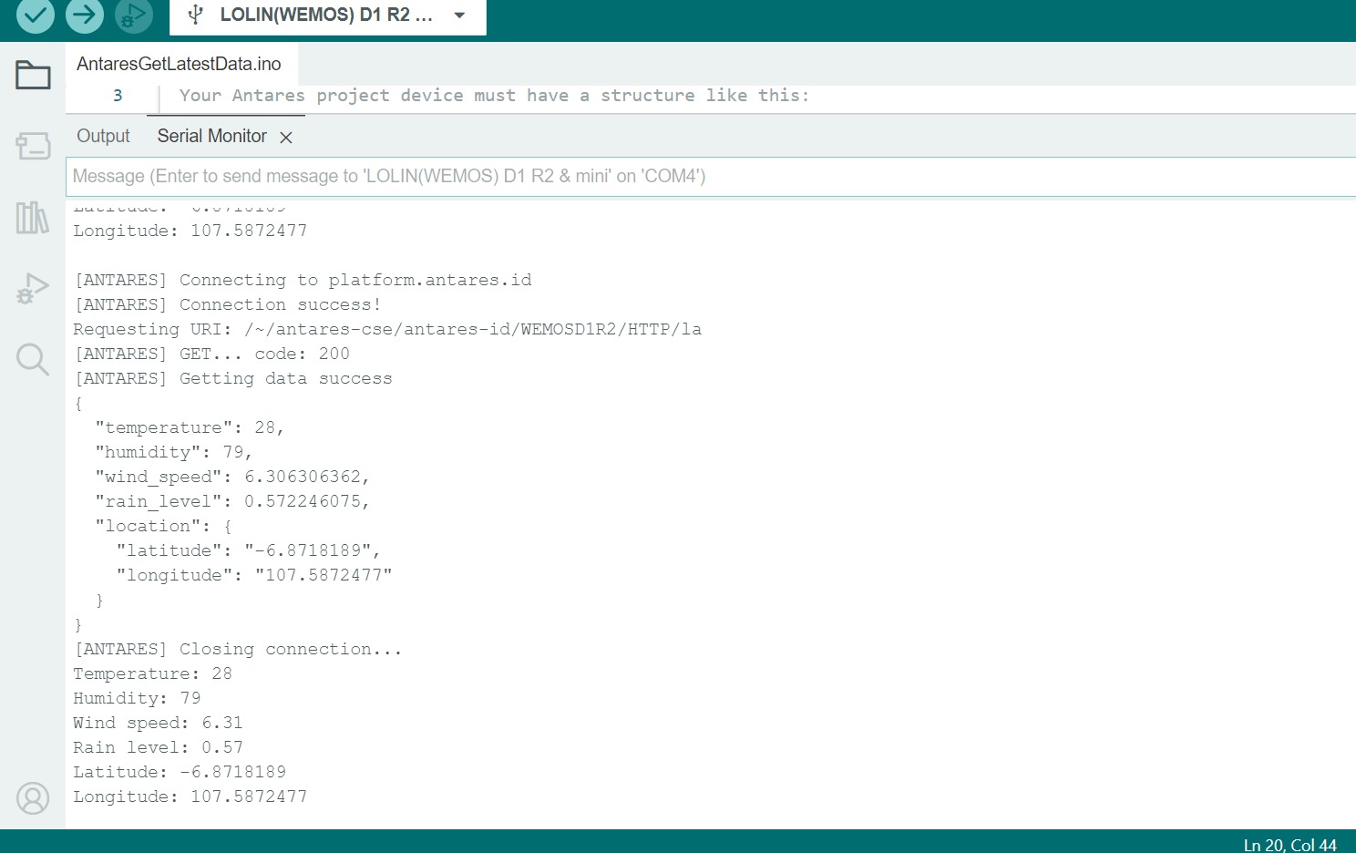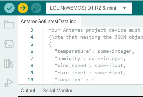 This code will fetch the latest data from your antares project device.