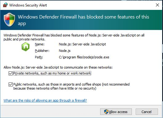 Allow Access when running the programme code.