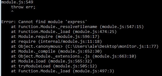 var express = require('express'); var app = express(); var server = require('http').createServer(app); var bodyParser = require('body-parser'); var util = require('util') app.use(bodyParser.json()); app.use(bodyParser.urlencoded({ extended: false })); app.post('/monitor', function(req, res, next) { console.log(util.inspect(req.body, false, null)); res.send('ack'); }); server.listen(9000, function() { console.log('App listening on port 9000'); });