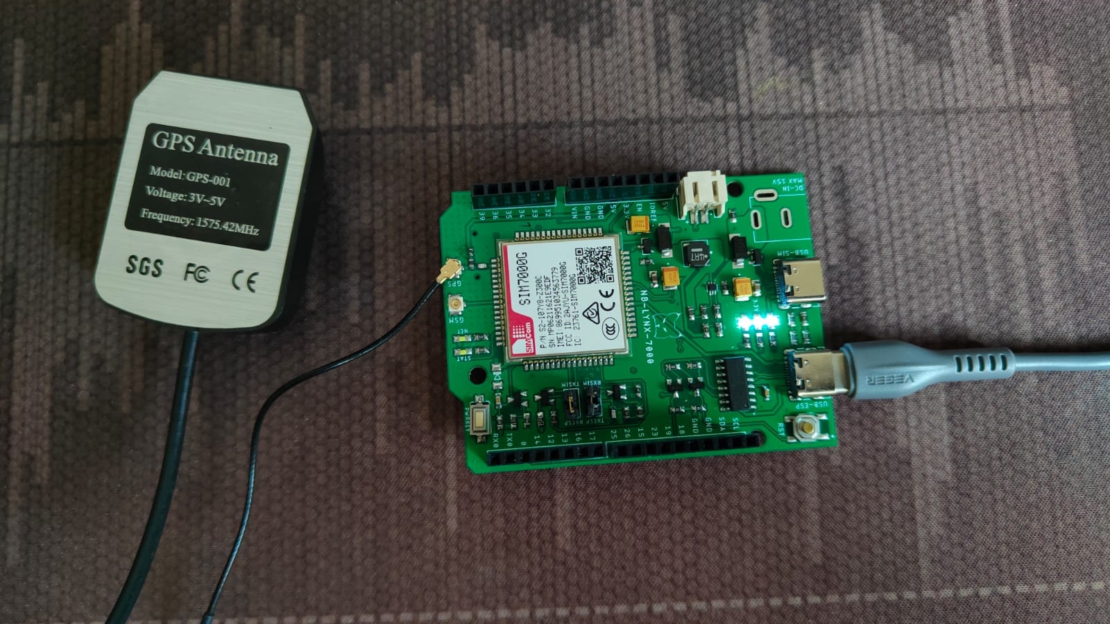 The first thing you need to do is to setup the equipment by connecting the NB-LYNX-7000 board with the GPS Antenna. The board can then be connected to your laptop/computer using a USB-C cable.