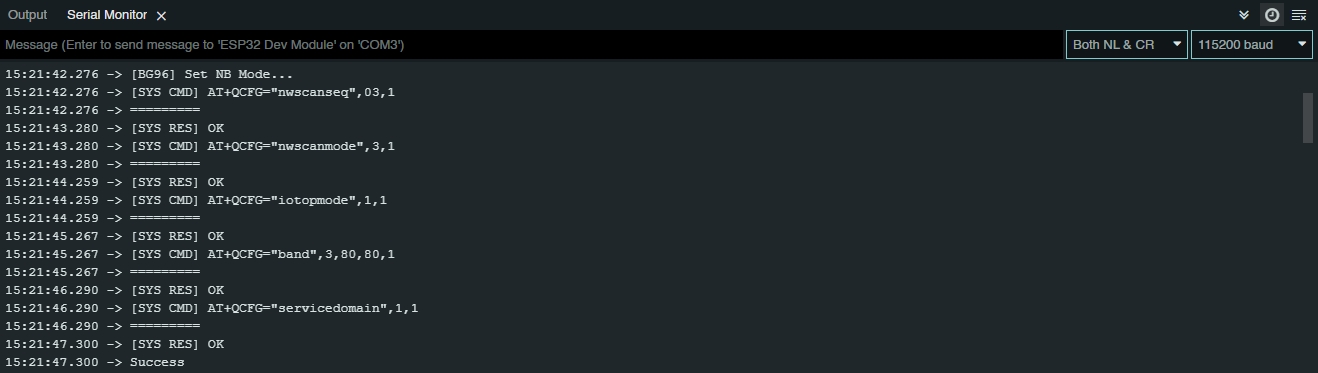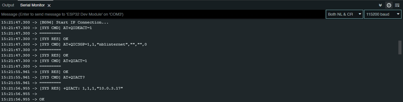 The Serial Monitor display will be as shown below, signalling the initiation of the BG95-M3 module.