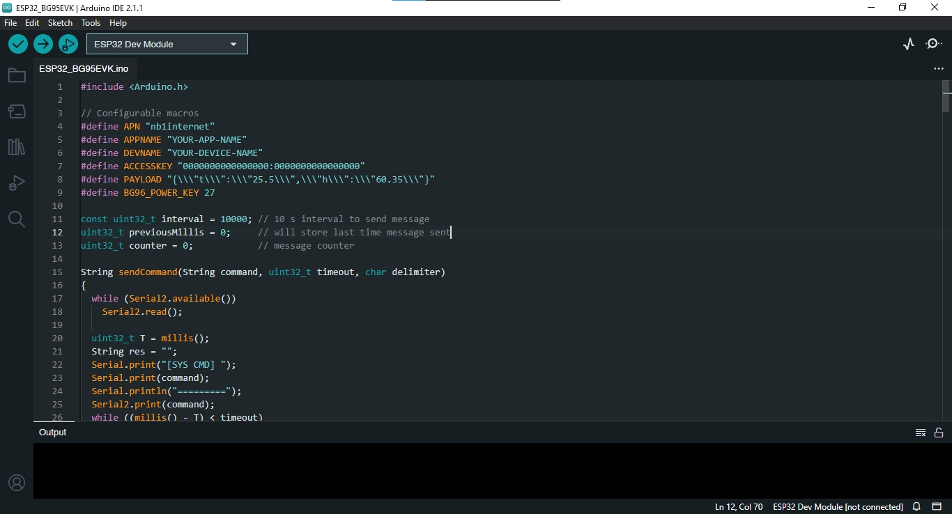 Don't forget to replace APPNAME with the name of the application you created on the Antares platform, DEVNAME with the name of the device created on the Antares platform, and ACCESSKEY with your account access-key.