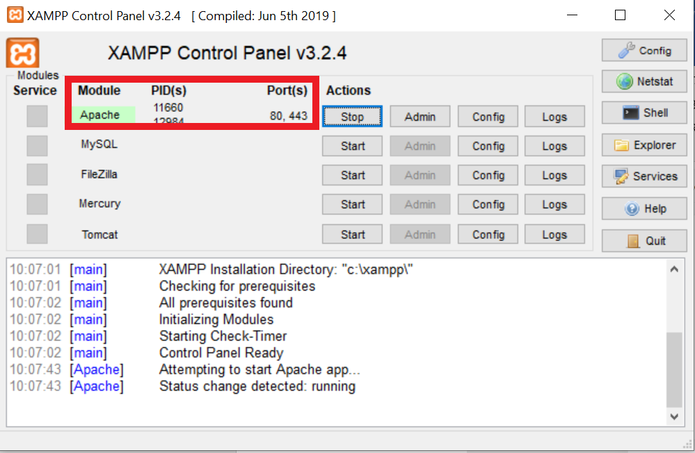 Start Apache on XAMPP