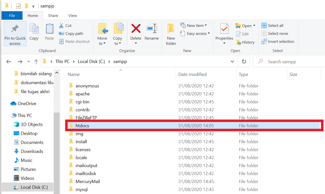 Next extract the php library that has been downloaded and then copy it to C: \xampp\htdocs, in this tutorial xampp is installed in the C directory.