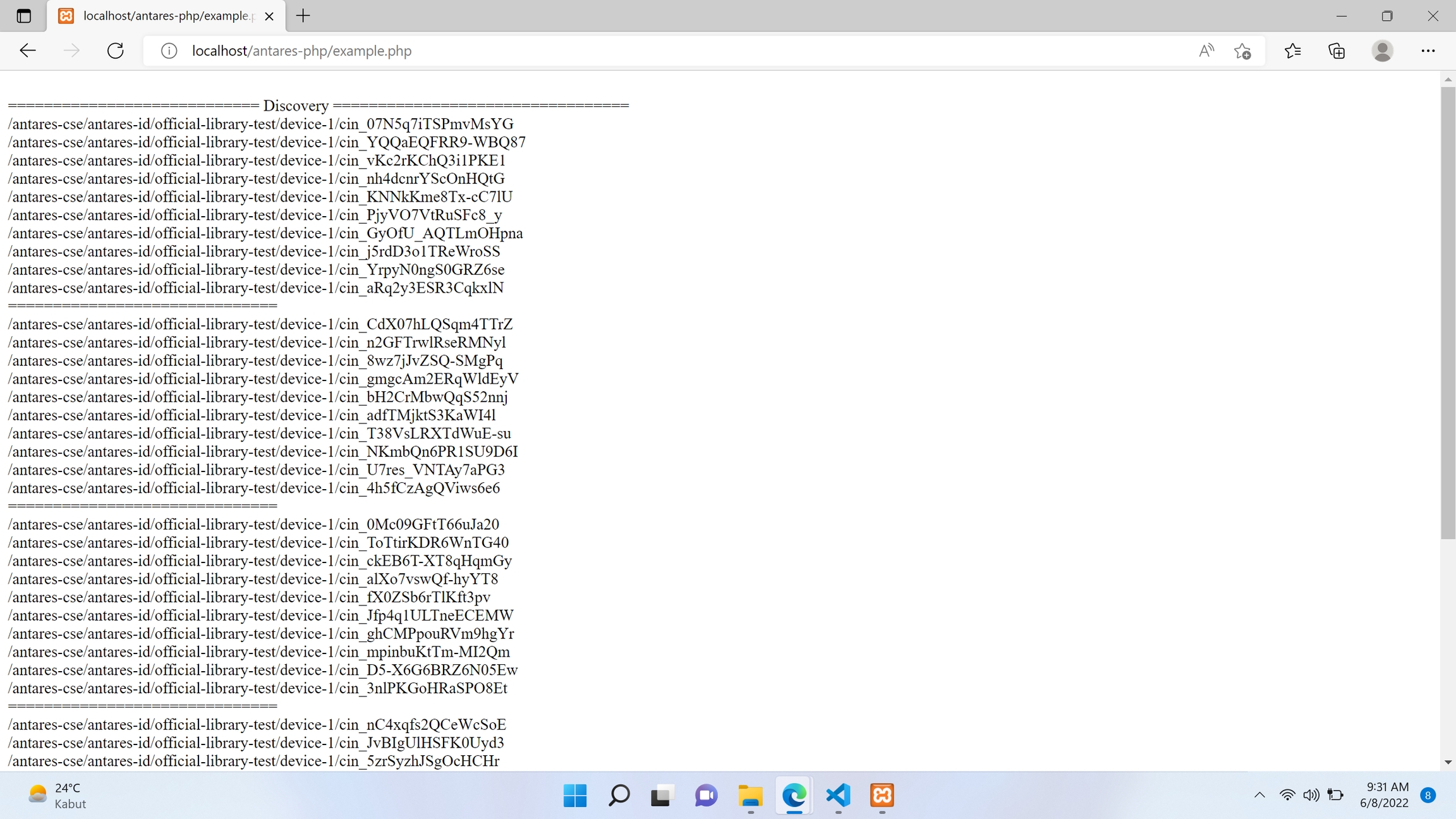 The next step is to open http://localhost/antares-php/example.php (according to the storage folder in htdocs) in the browser, then the following results will appear: