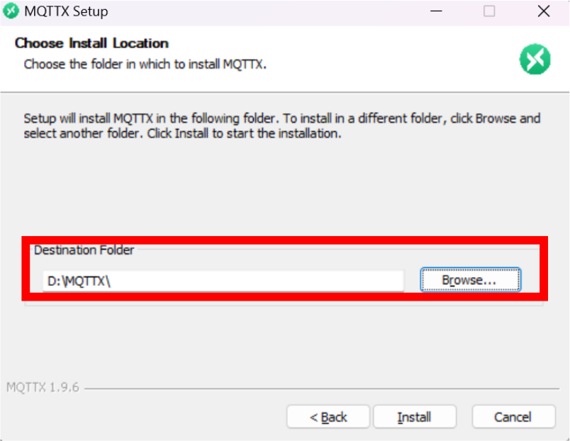 You can change the "Destination Folder" according to the desired installation location by clicking Browse..&#x20;