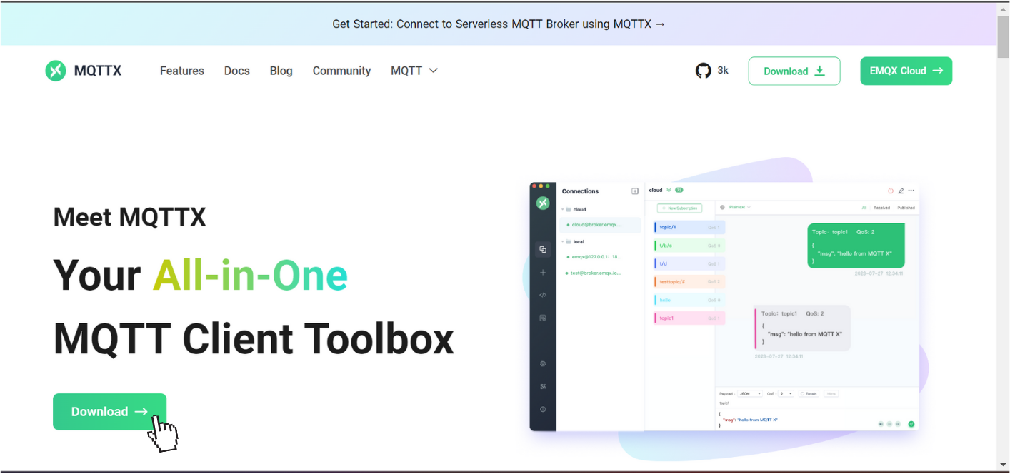 ### 1. Visit the [mqttx](https://mqttx.app/) . Click [download](https://mqttx.app/downloads) to install