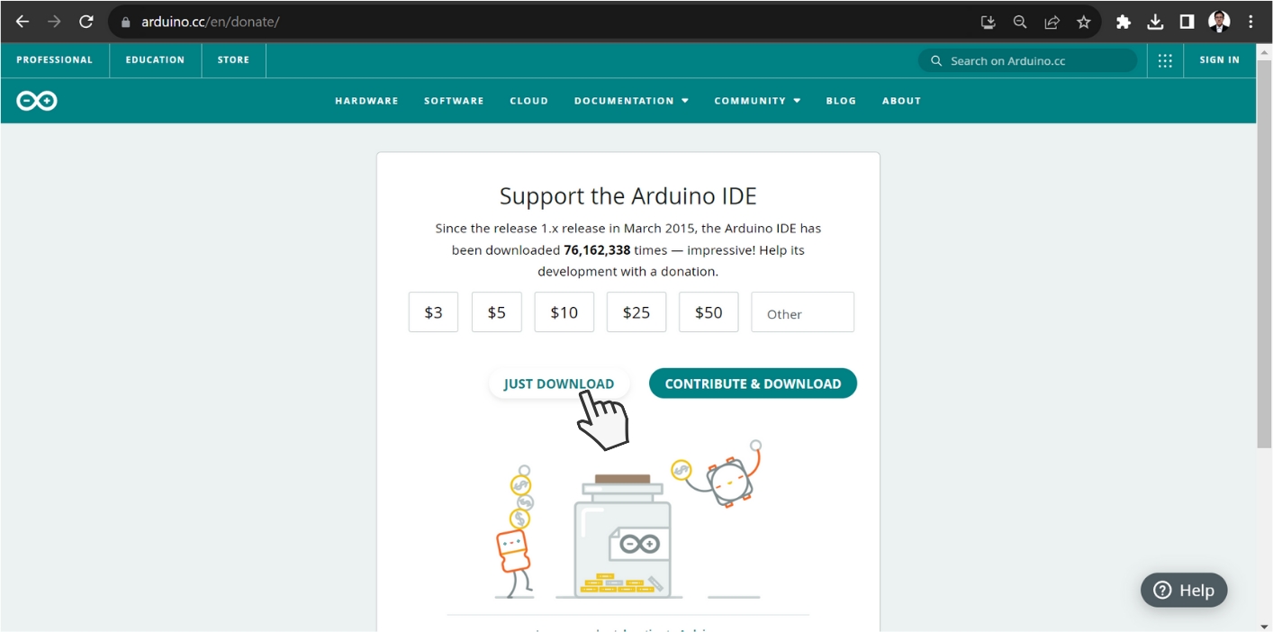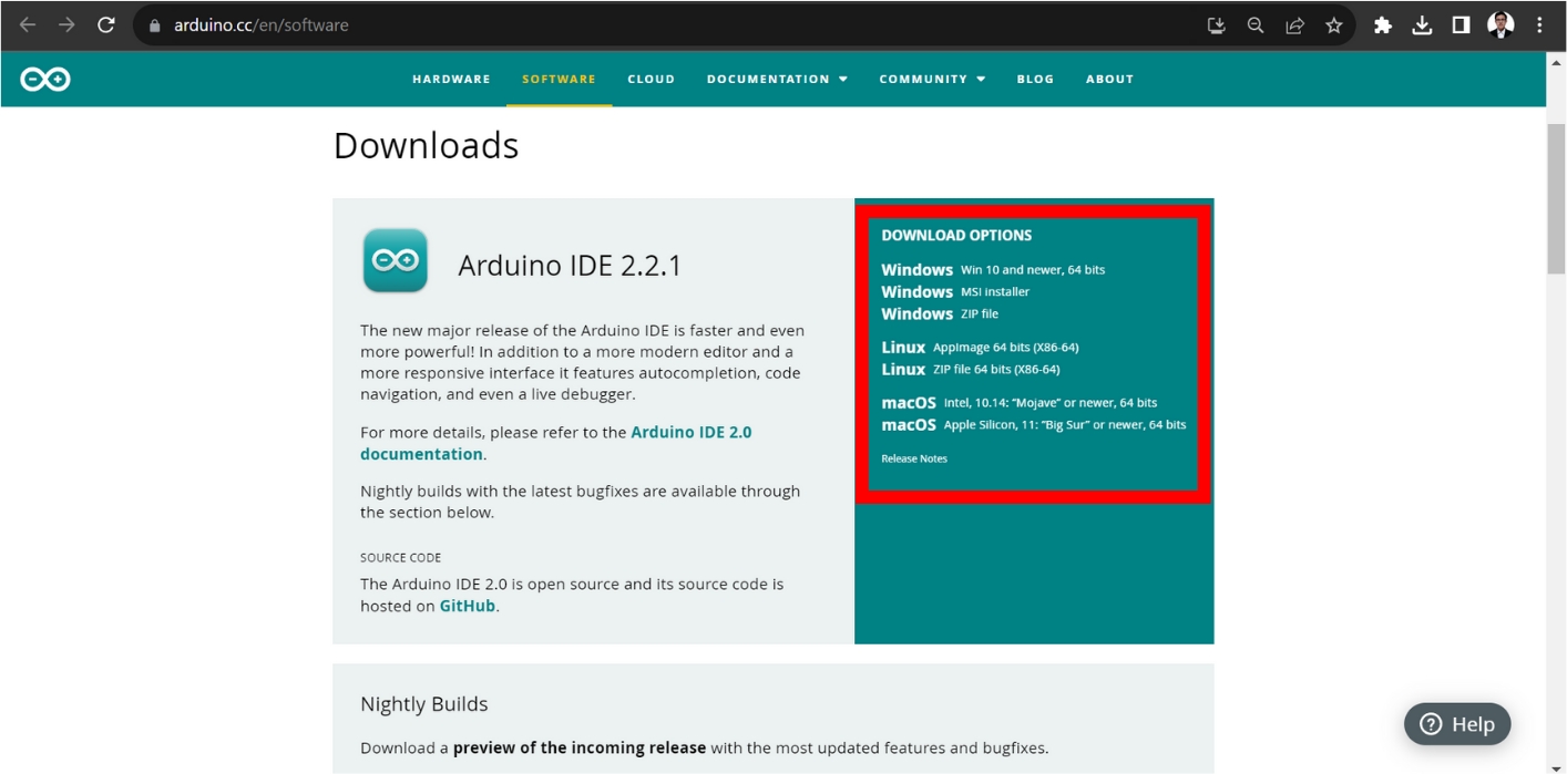 1. Kunjungi laman arduino.cc . Klik software untuk melakukan instalasi