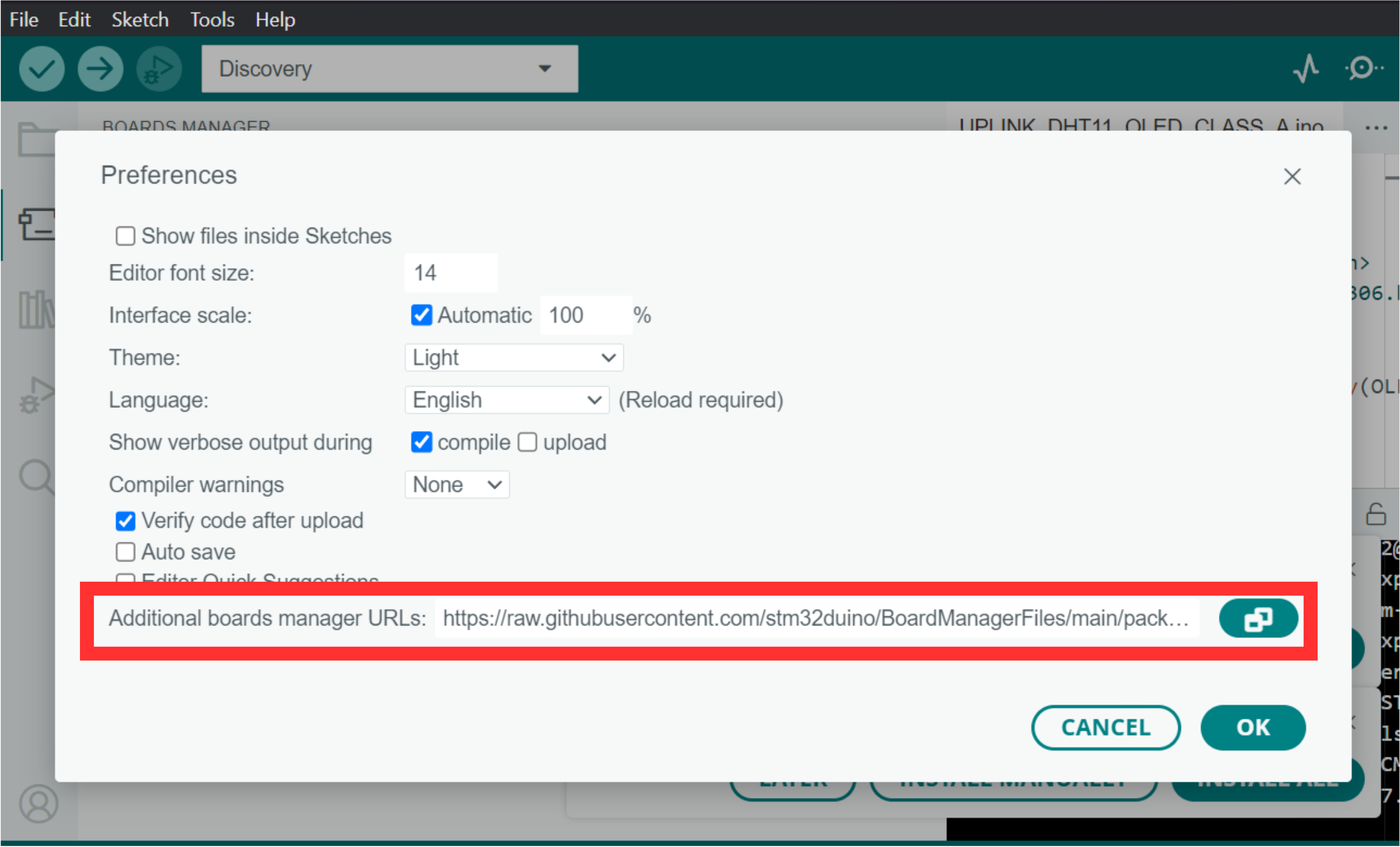 ### 2. Masukkan URL berikut ke dalam kotak Additional Board Manager URLs kemudian klik OK.
