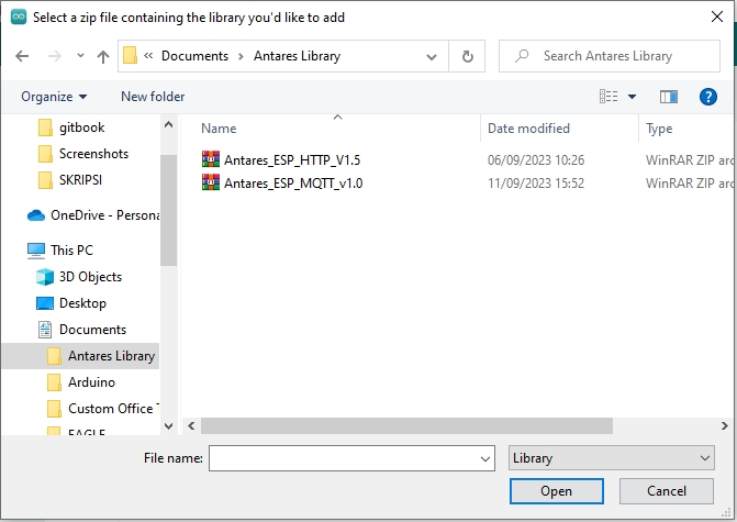 Cari lokasi file library yang sudah di download, kemudian input file yang sudah di download terlihat seperti gambar berikut.