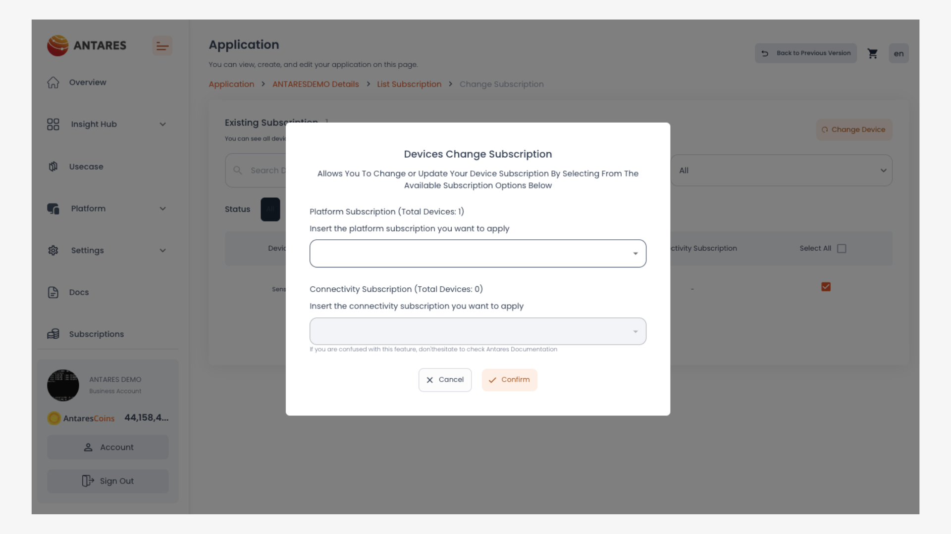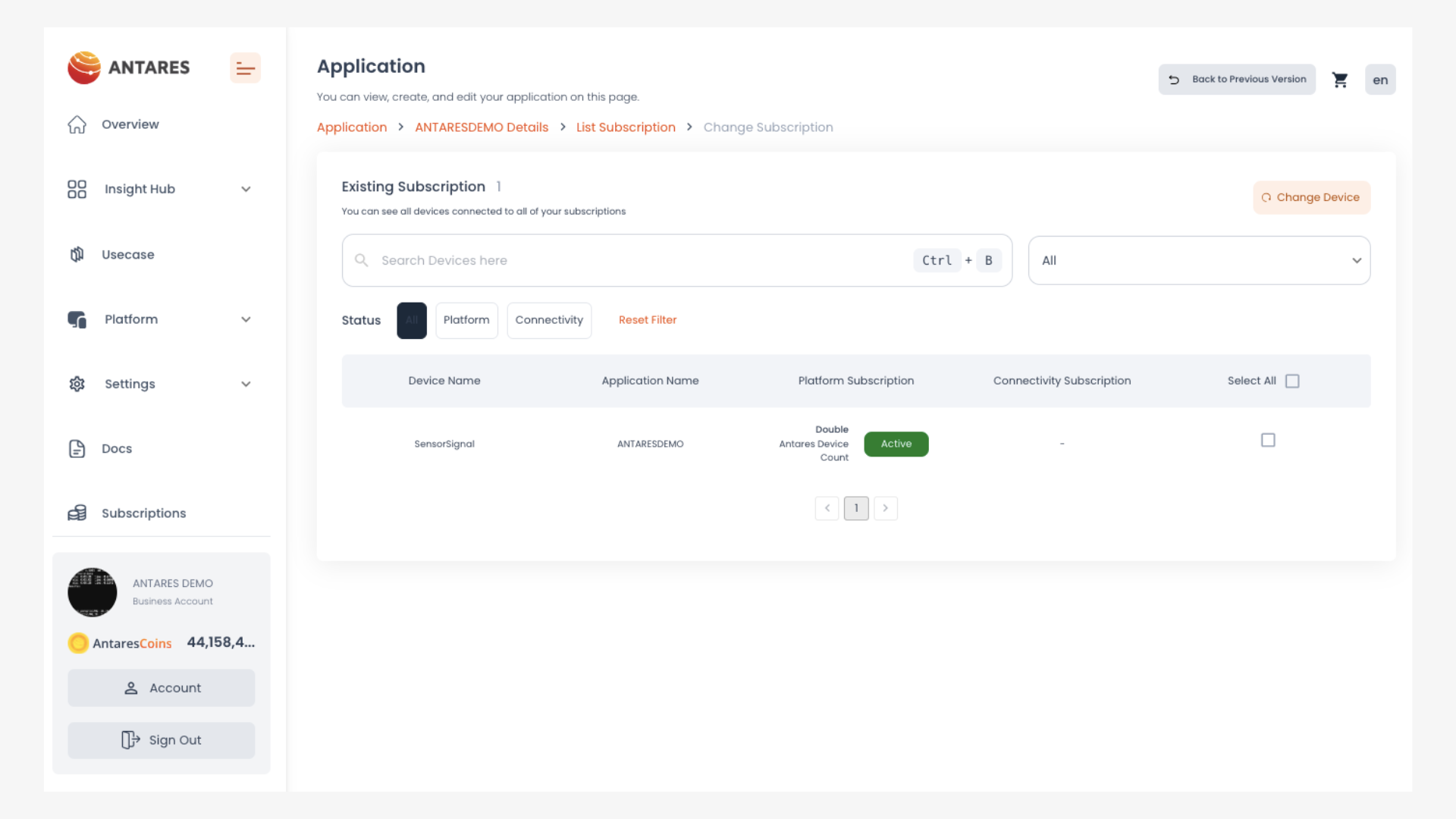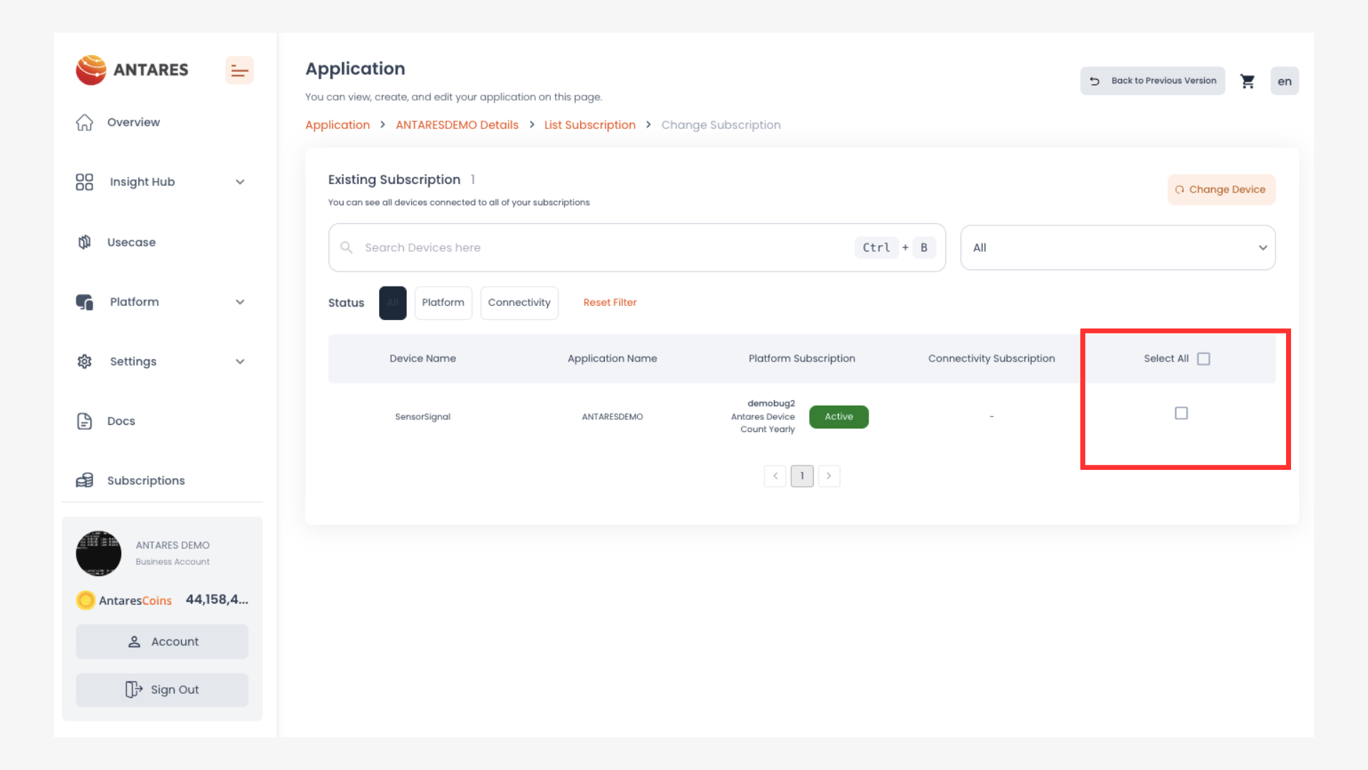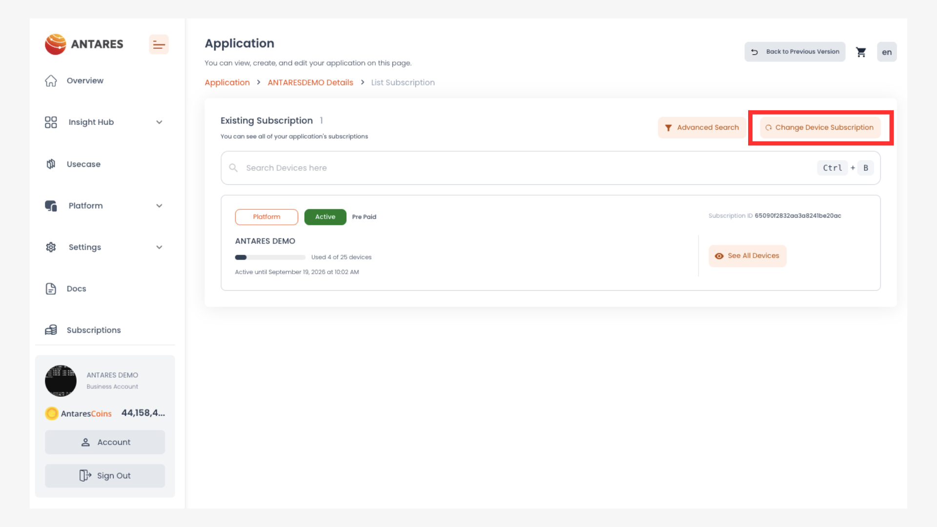 2. Klik tombol **"Change Device Subscription"**