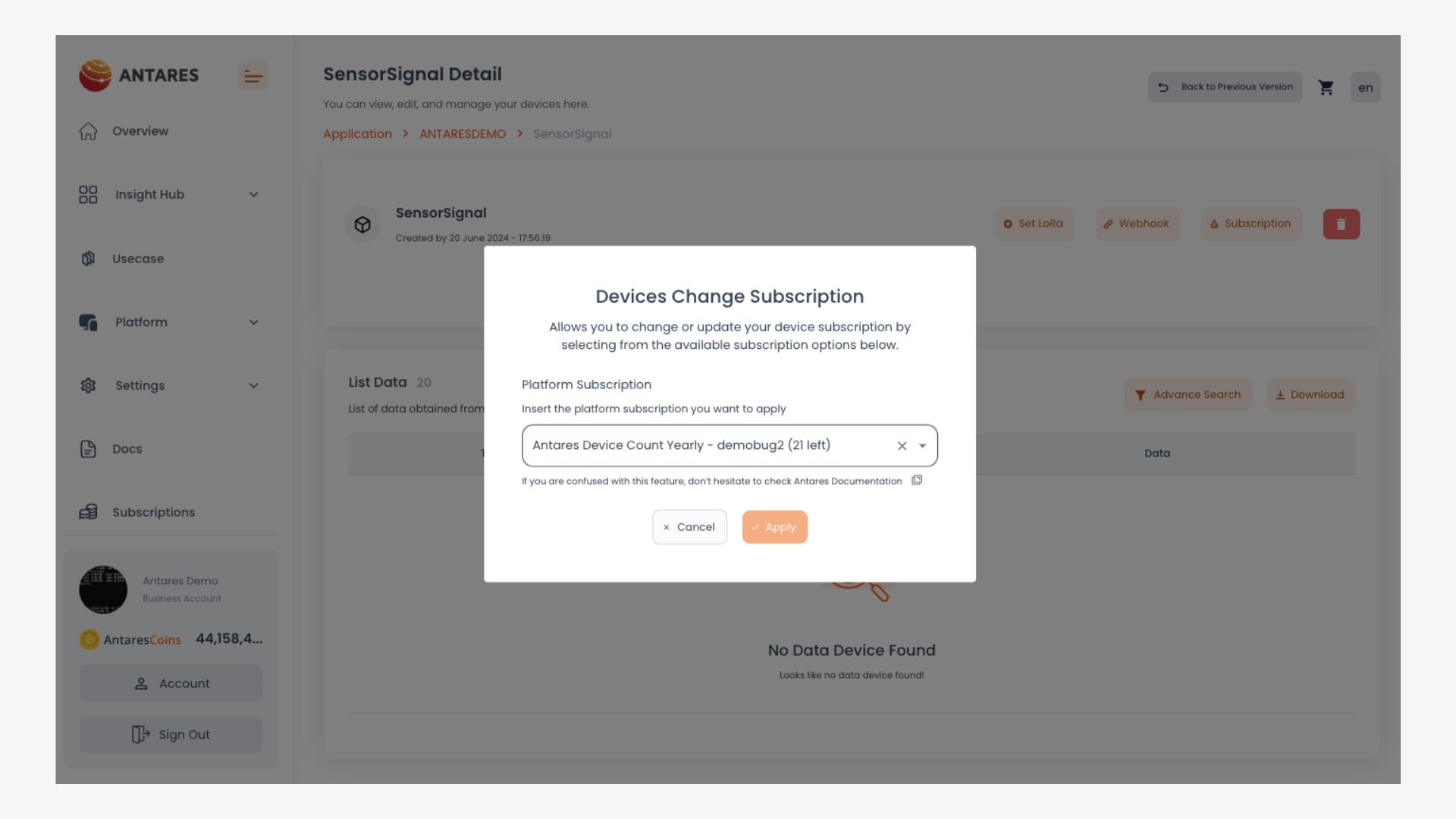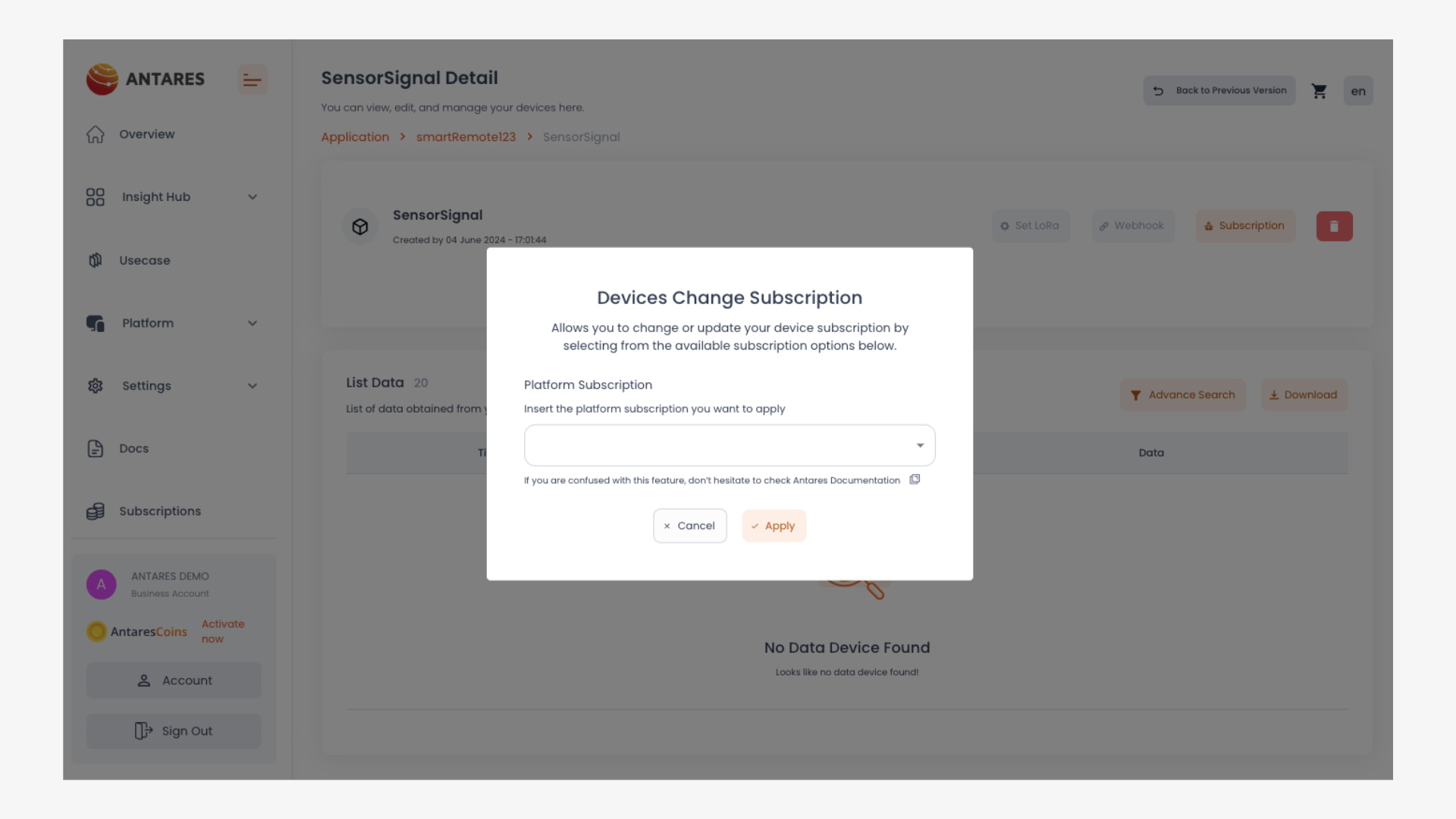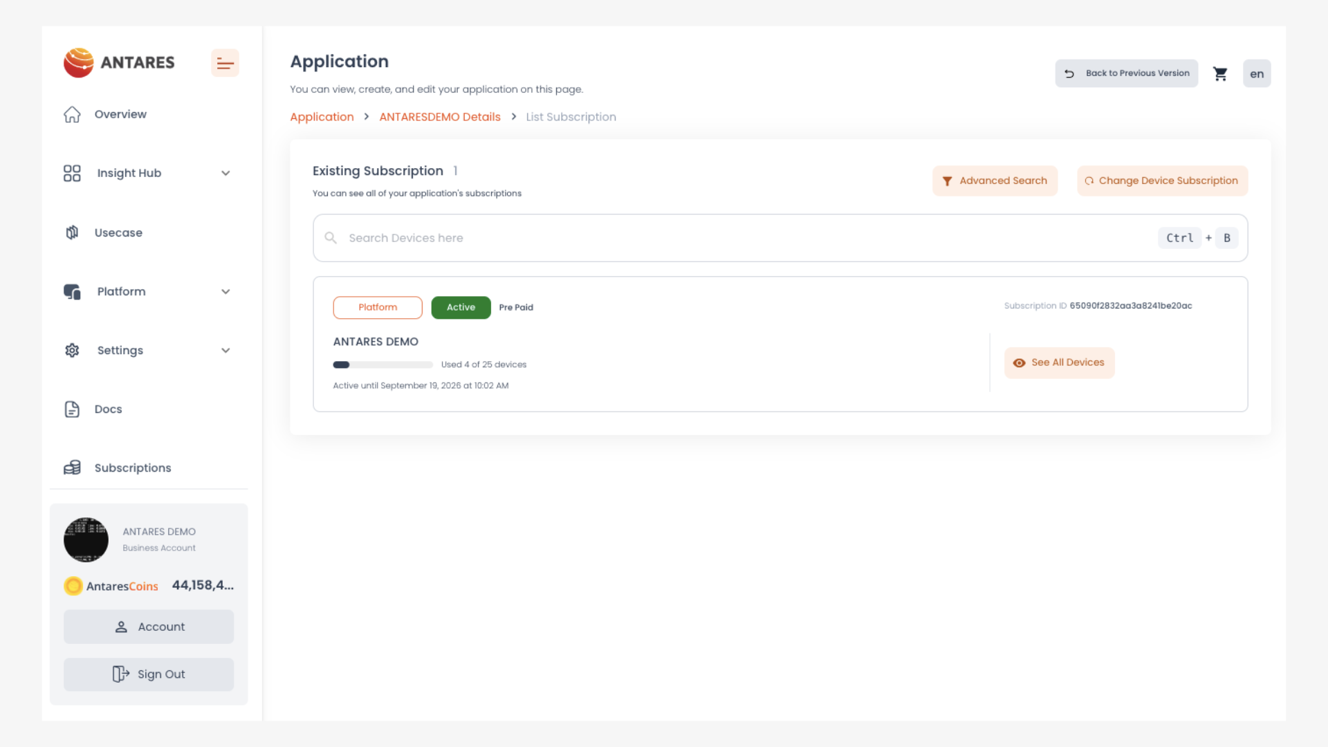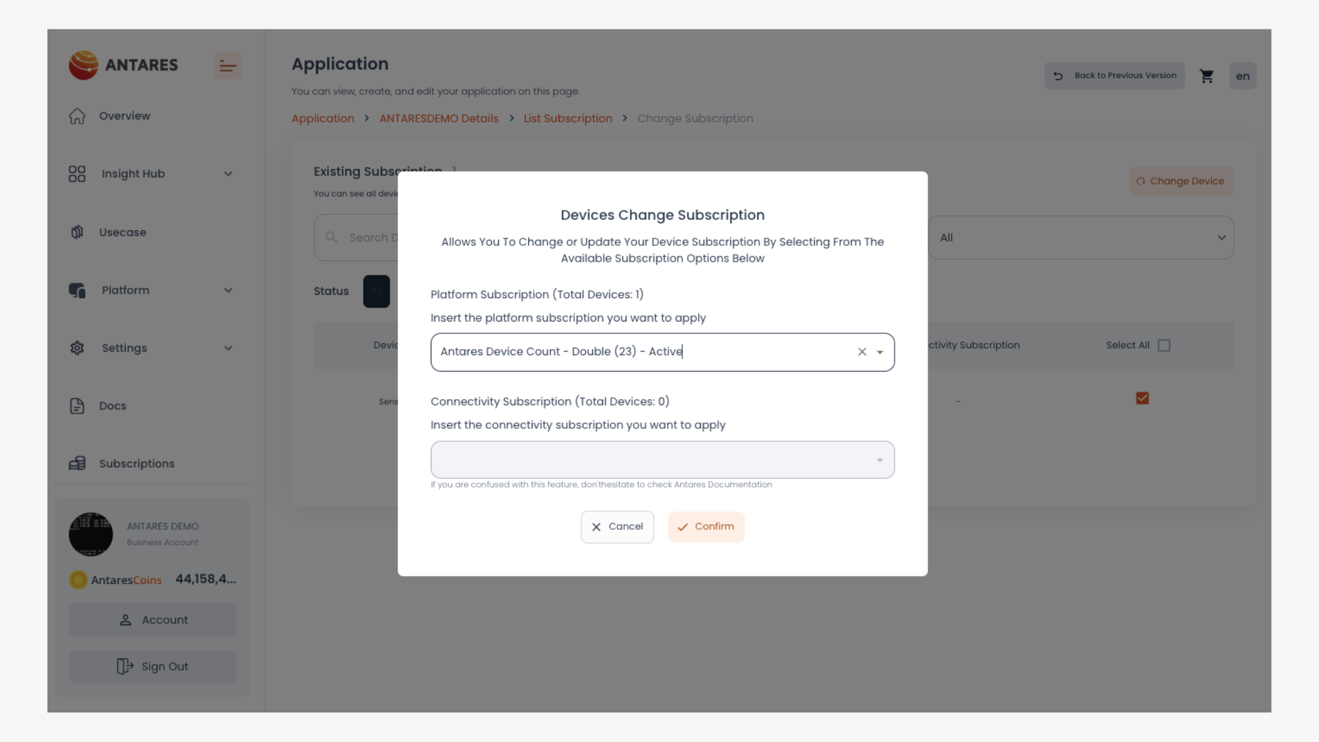 2. Klik tombol **"Change Device Subscription"**