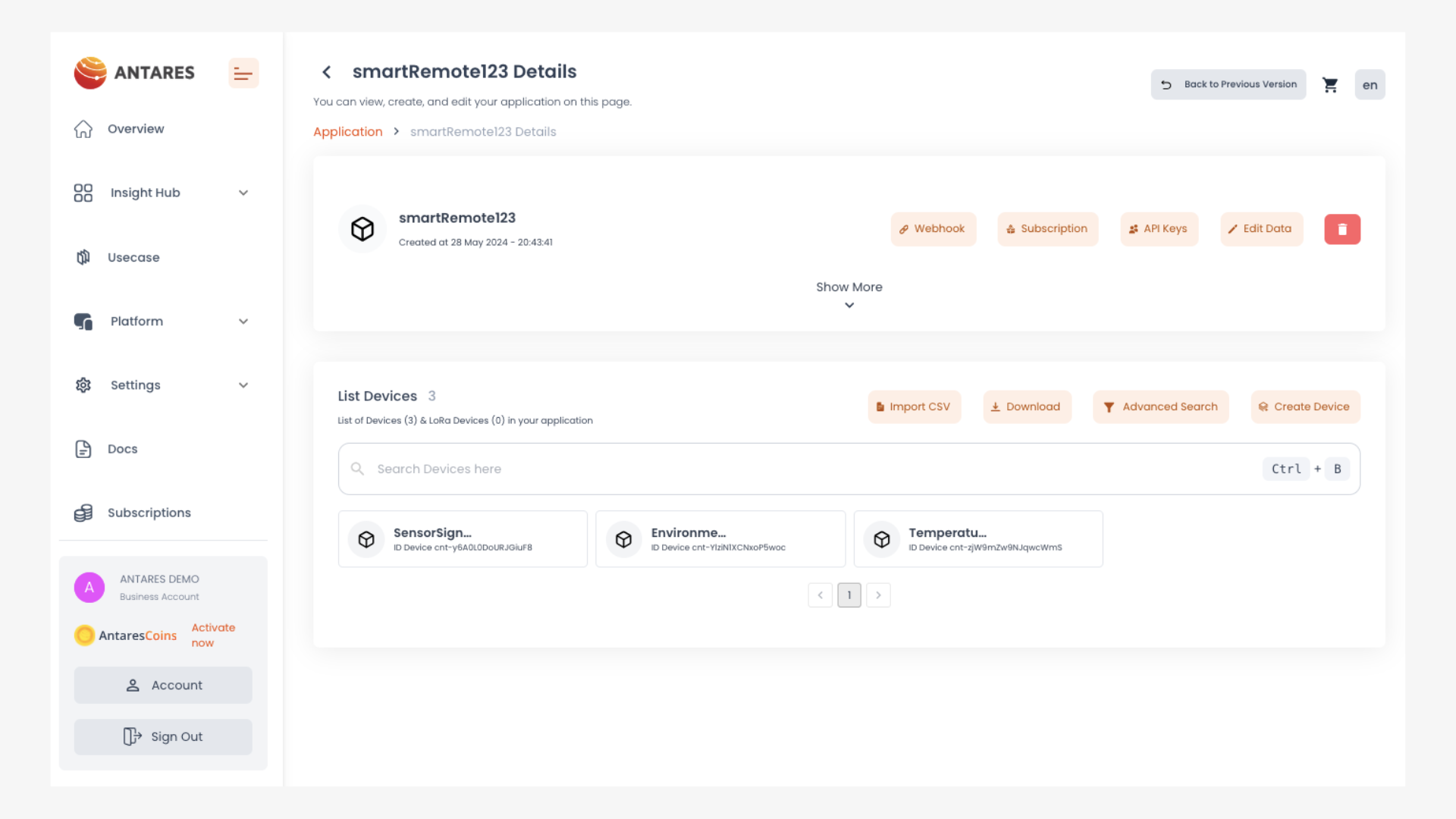 1. Log in akun Antares dan buka halaman **"Applications"**