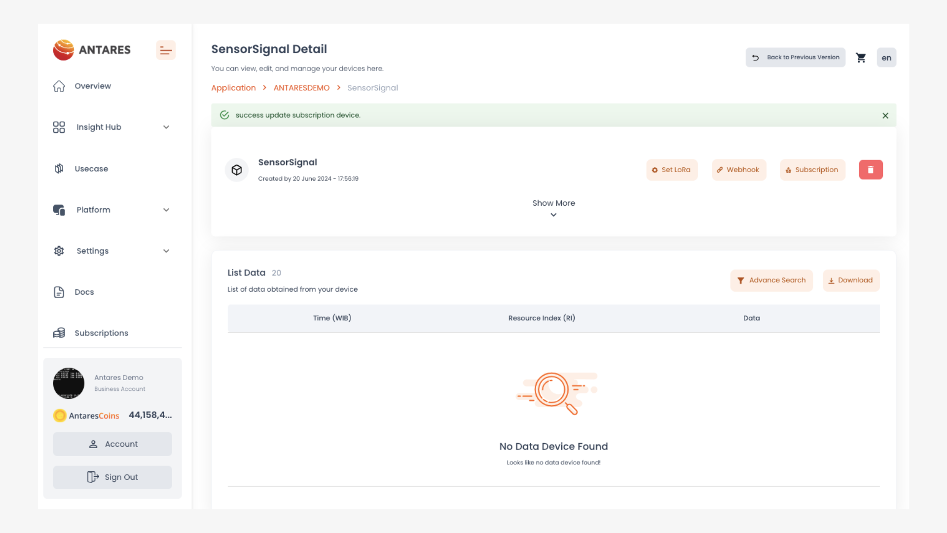 Selanjutnya Paket Platform akan berubah secara otomatis ditandai dengan status "success update subscription device"