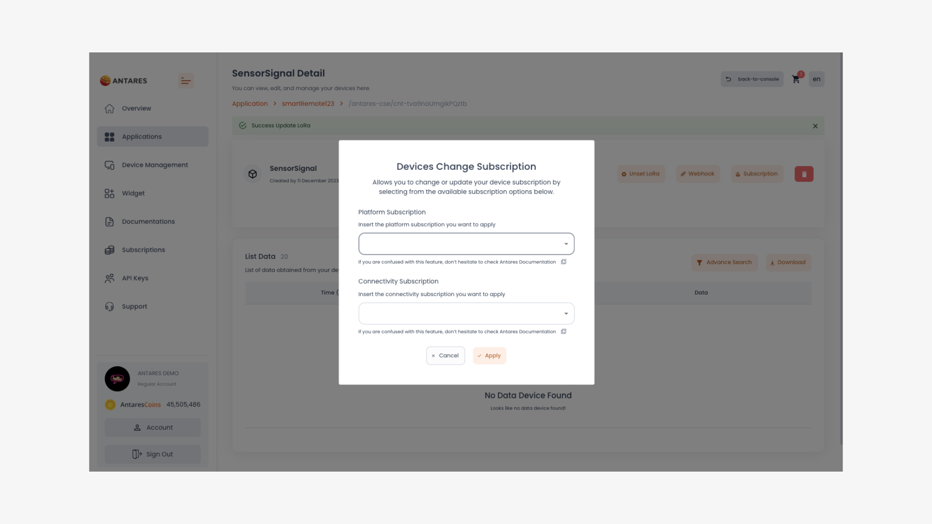 Jika Anda berlangganan layanan LoRa, maka pop up akan muncul sebagai berikut