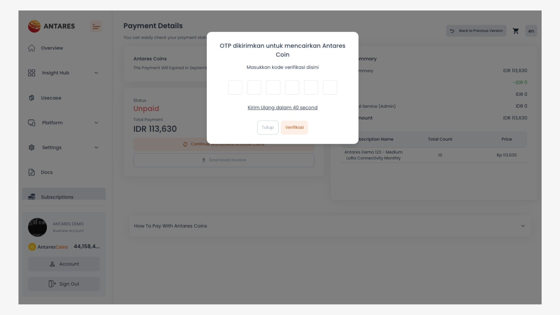 ### Tata Cara Pembayaran Menggunakan Antares Coins